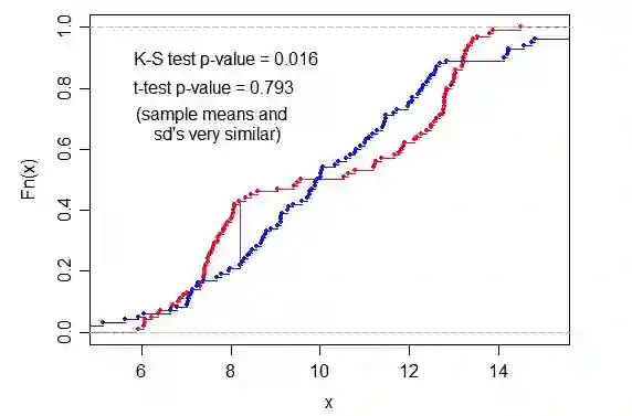 KS Test(Kolmogorov-Smirnov)是由两位苏联数学家 A.N. Kolmogorov 和 N.V. Smirnov 提出的,用于比较样本与参考概率分布或比较两个样本的非参数检验。