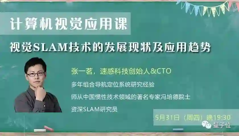 5月31日(周四)晚19:30,量子位·吃瓜社邀请到速感科技CTO张一茗,带来一节视觉SLAM方向的计算机视觉应用课。他将从机器人市场目前状况、以及SLAM技术的崛起与发展讲起,对三维深度传感器不同技术路线进行比较,跟大家一起讨论vSLAM如何实现及其应用问题。