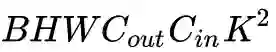 Conv2d(Cin, Cout, K): 参数数目:Cin × Cout × K × K
