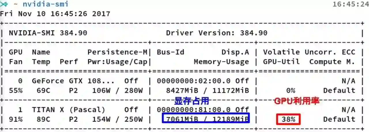 这是 nvidia-smi 命令的输出,其中最重要的两个指标: