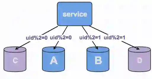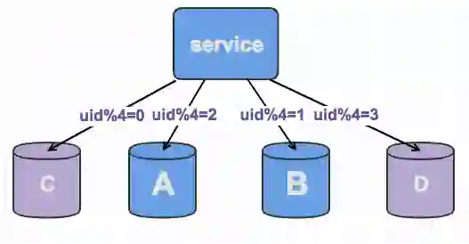 比如之前uid1通过uid1%3 分配在A库上,新加入库D之后,算法改为uid1%4 了,此时有可能就分配在B库上面了。如果你有看到之前《一致性哈希的原理与实践》,就会发现新增一个节点,大概会有90%的数据需要迁移,这个对DB同学的压力还是蛮大的,那么如何应对?