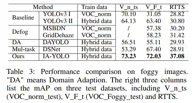 本文提出的IA-YOLO方法可以在正常和恶劣天气条件下自适应处理图像。实验结果证明了IAYOLO方法在雾天和弱光情况下的有效性。