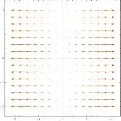 空间中向量场看起来很难有直观的感觉, 为了看的更清楚绘制切片曲面上的三维向量图, 这样四维的可视化会更能清晰表示在三维区域上的向量值. 比如从下面图形可以看到整个图形是由 {0,0} 向外背离原点, 且越靠外边, 向量长度越大