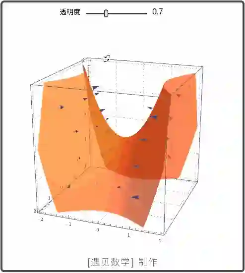 如下面绘制马鞍曲面上梯度构成的向量场图.