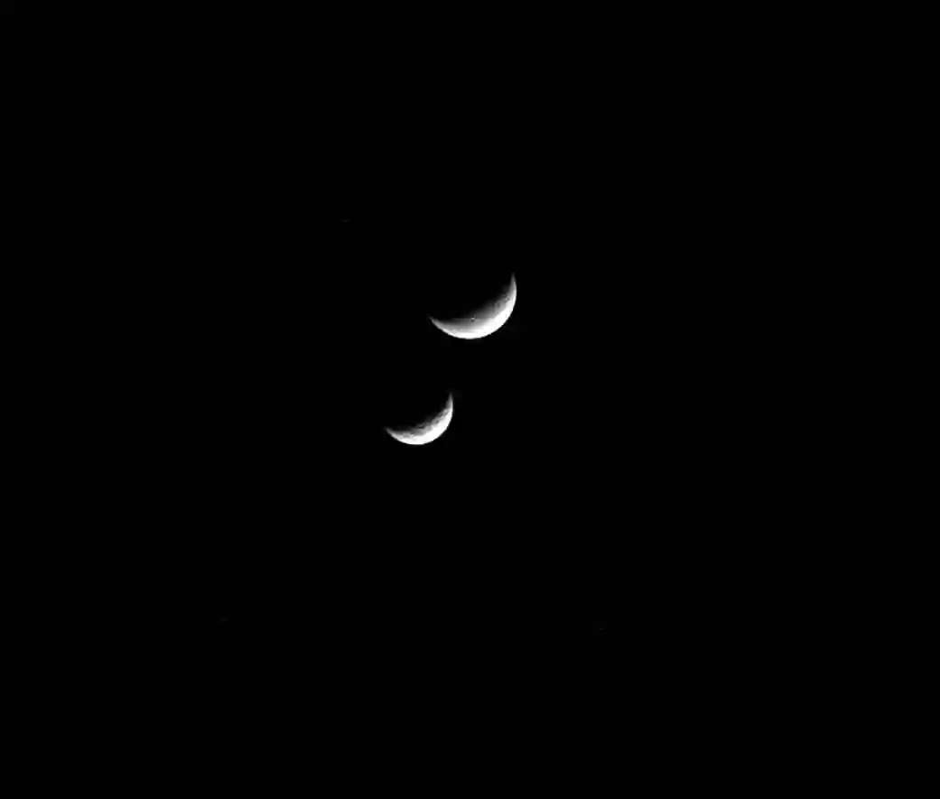 这些月亮都是土星的卫星,它们不断的出现消失,构成形态各异的景象。有如同母女般的关系,让卡西尼见证一下“双月牙”;