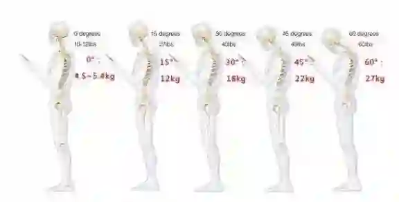 头部弯曲15度,颈椎会增加12千克的压力;