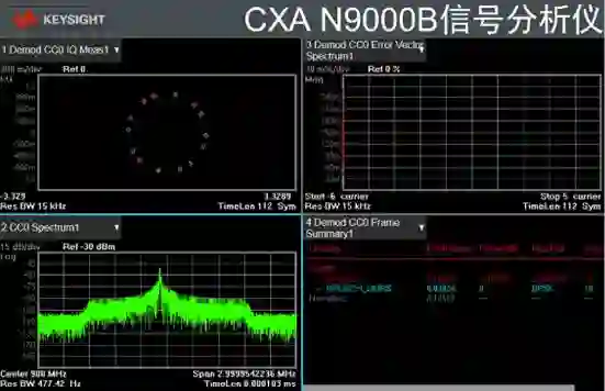 以上的种种发射机指标均可以通过Keysight的CXA N9000B系列信号分析仪进行分析。测试截图如下所示: