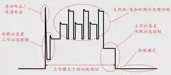 不单单是NB-IoT,物联网处理芯片 MCU/ECU、BLE/WIFI/Zigee 无线模块完成一个数据处理或传输的时间大概就持续几个ms。在这个时间段内包括一系列的动作和协议,如从休眠模式唤醒,数据预处理、数据装载、数据发射、数据接收、动作完成后再次回到低功耗模式等。