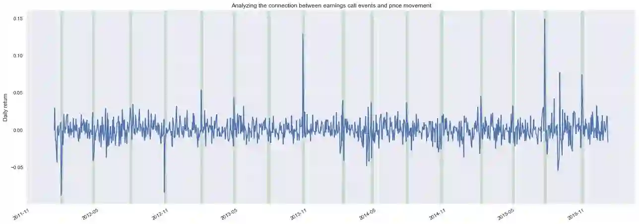 Transcripts are scraped from Seeking Alpha using the Python library Scrapy.