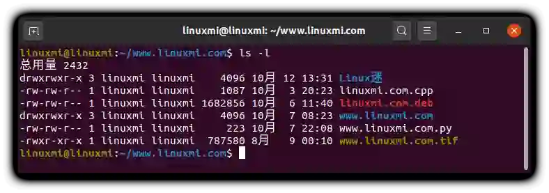 linuxmi@linuxmi:~/www.linuxmi.com$ ls -l