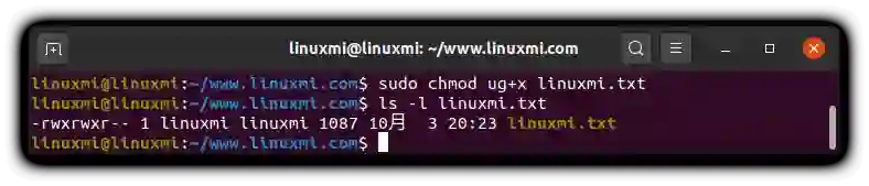 linuxmi@linuxmi:~/www.linuxmi.com$ sudo chmod ug+x linuxmi.txt