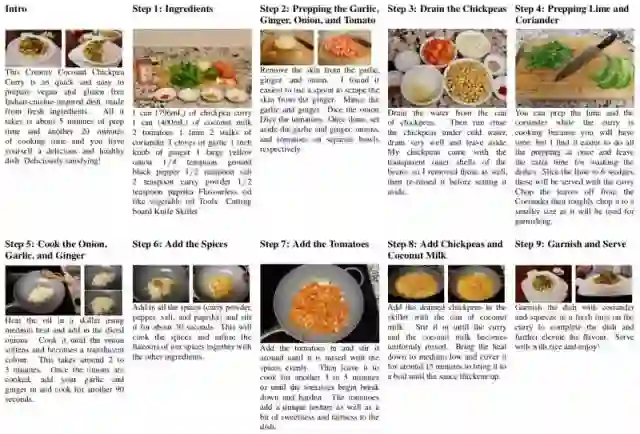 RecipeQA中的每个菜谱包括多个做菜步骤,每个步骤包括文本和图像描述。 除此之外,数据集还还包括自动生成的大量问题。 下面是一个菜谱的示例: