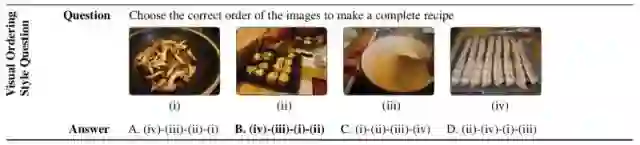 特别是,由于菜谱和多模态数据的特殊性,RecipeQA包含以下三个核心挑战: