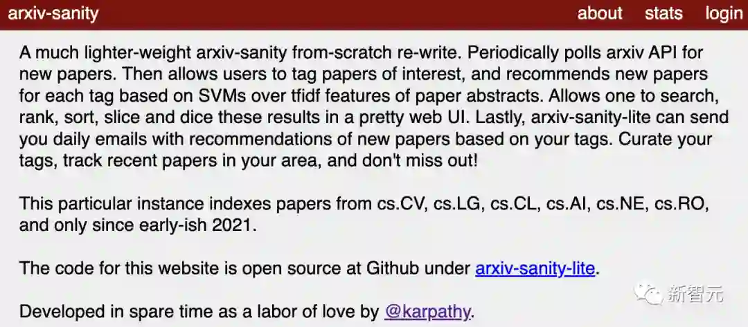 此外,他一有时间就会去维护自己「用爱发电」的arxiv-sanity,一个可以在过去6年里搜索和整理近