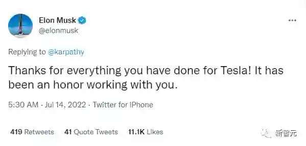 特斯拉AI高级总监、自动驾驶负责人Andrej Karparthy宣布离职,马斯克推特亲切送别。