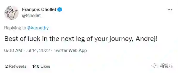 谷歌著名研究员、Keras框架创始人François Chollet也发推表示祝福,祝他早日开启职业生涯新阶段。