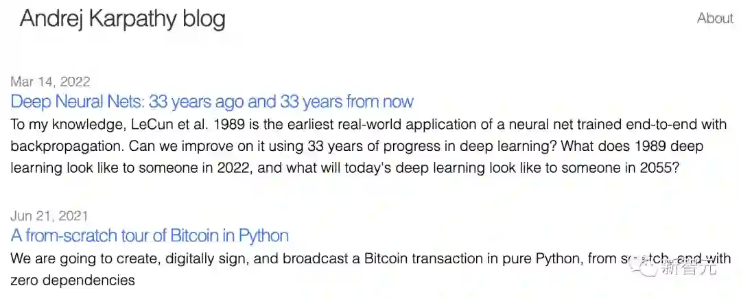 由于Karpathy本人十分喜欢研究神经网络,他在闲暇之余写了不少技术博客,并在Javascript中开发了多个深度学习库(如ConvNetJS、RecurrentJS、REINFORCEjs、t-sneJS)。