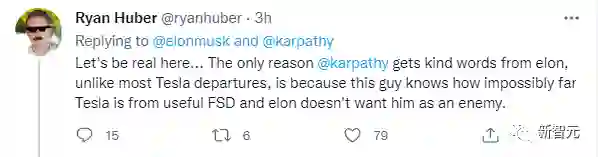 网友Ryan Huber说,Karpathy得到马斯克的赞赏,只是因为马斯克不想让他落入敌人的阵营,毕竟这位可是对特斯拉全自动驾驶知根知底的人。
