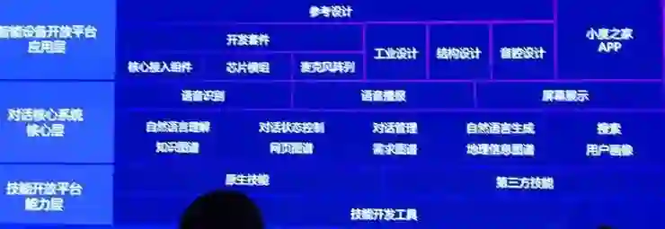 核心层。包括从语音识别、语音播报到屏幕显示完整交互流程,以及背后支撑交互的自然语言理解、对话状态控制、自然语言生成、搜索等等核心技术,这些技术支撑着上下两层的实现。