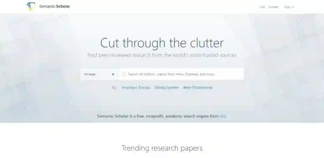 Semantic Scholar 是由微软联合创始人 Paul Allen 所开发的免费学术搜索引擎,你可以在 Semantic Scholar 上搜索到来自学术期刊、学术会议及学术机构的文献。在搜索学术文献的时候,你不但可以通过时间线快速找到具体年份范围的文献,还可以通过强大的筛选功能更加精准地找到自己所需要的文献。