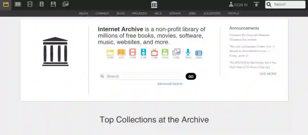 Internet Archive 正如它的名字一样,是一个「互联网档案室」,你可以在 Internet Archive 搜索到上百万的免费资源,这些资源囊括了图书、电影、软件、音视频、图片等。网站也提供了非常详细的筛选功能来帮助我们更加高效地找到