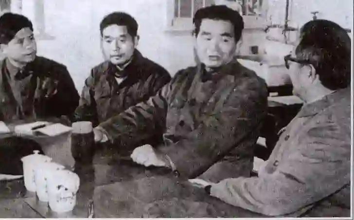 1980年,合肥联合大学校长杨承宗、董事长郑锐、教务长贾志斌、副教务长赵立人(右起)在研究工作