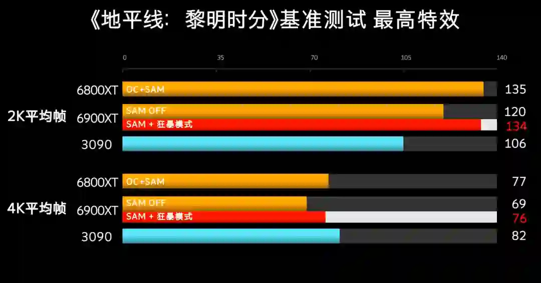 黎明时分里,2K分辨率AMD领先很多,4K没能赢过3090。