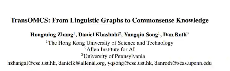 6、TransOMCS: From Linguistic Graphs to Commonsense Knowledge(从语言图谱到常识图谱),IJCAI 2020
