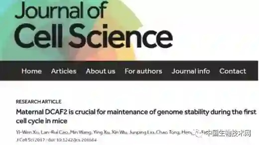 该研究首次证明 DCAF2 是保障受精卵第一次 DNA 复制顺利完成的母源性因子,也首次研究了 DCAF2 在哺乳动物体内特定细胞类型(卵母细胞)中的生理功能,进一步阐明了 CRL4 泛素连接酶维持正常雌性生殖过程的分子机制。相关结果发表在 Journal of Cell Science 上。范衡宇实验室博士研究生徐一文为本文第一作者。JCS 杂志也对徐一文进行了专访,专访内容将发表在 JCS 杂志网站的“第一作者访谈”专栏。