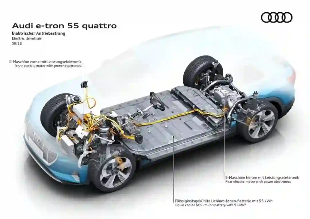 最大功率300kW、最大扭矩664N·m的前后双电机布局,为奥迪 e-tron带来了绝对充沛的动力。但比动力强劲更重要的是,奥迪将引领了一个时代的四驱quattro技术「再进化」,奥迪 e-tron 传承了几乎所有奥迪的驾控基因,搭载了「e时代」的全新quattro四驱系统,不仅实现了起步即大扭矩的优秀爬坡能力,更是凭借电控系统的特性实现了4倍于传统机械结构的反应速度,预判锁止能力进一步提升。e-quattro电动四驱系统自如的扭矩精确分配,让这款车的转向更灵活。只有试过,你才能感受到奥迪e-tron是最像燃油车驾趣的电动车。