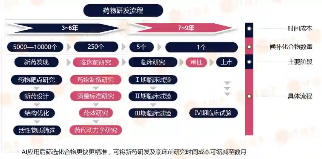 药物研发具有时间长、高投入、高风险的特点。其中,新药发现由靶点确认、分子设计、化合物合成、活性筛选等多个步骤组成,需要药物研发人员筛选上万个化合物,进行无数次实验去探索、证明与评估。
