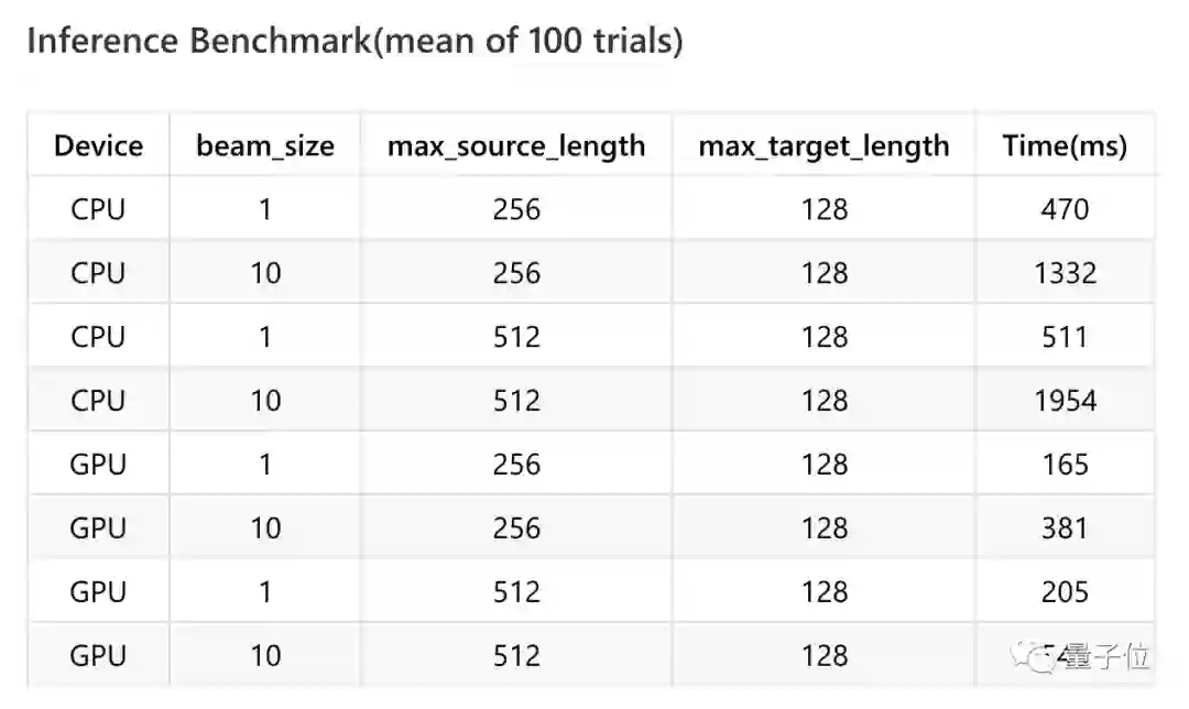 之后,进行的推断基准测试如下:
