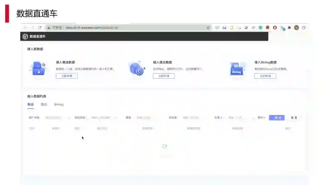 上图是我们的数据直通车,能够做到让用户自己在产品中操作,不需要写代码即可完成,可以实现低门槛的快速简便的应用。比如配置数据接入仅需 1 分钟左右,整个过程就是在产品上以配置化的手段就能够将数据最终落在数据库,我们的离线表、数仓、做数据分析都能够直接快速的运用起来。