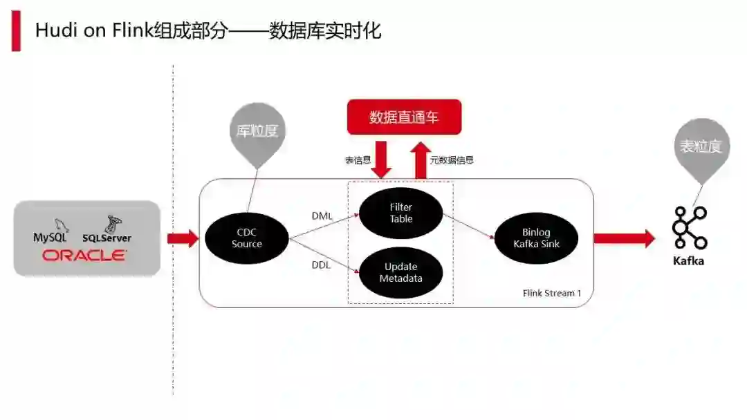 一部分是 DML,它会有过滤,当库里面有 100 张表时,很多时候有些表是不需要的,这部分我们会直接过滤掉,过滤就主要是通过产品化来打通它。