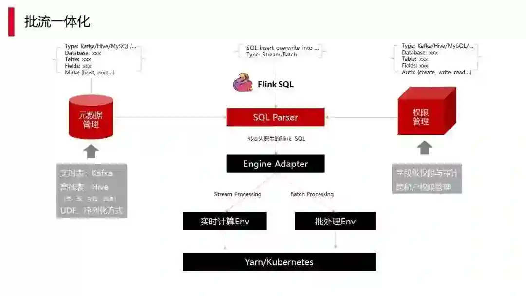 上图是我们做批流一体化的过程,批流一体化在元数据管理与权限管理部分都已经有一些落地。