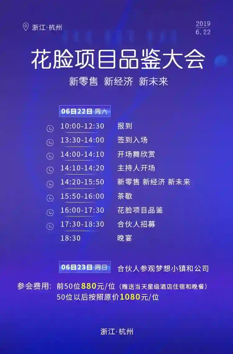 可参加2019年6月22日花脸项目品鉴/暨合伙人招募会!