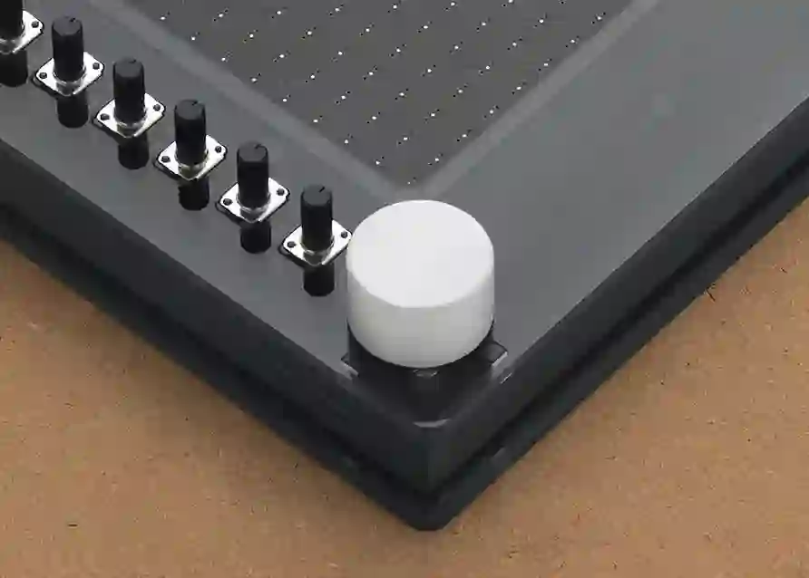 每个旋钮代表四种不同的源声音,音乐家能通过控制旋钮选择不同音色,然后手指在触摸屏上滑动,将这四种声音结合起来。
