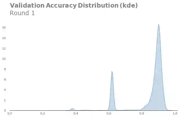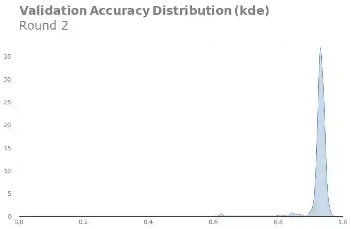 第一回合的验证精确度峰值是94.1%的,而第二回合的验证精确度峰值是96%的。看起来我们的调整还是有效的。当然,峰值可能仅仅源于抽样的随机性,所以我们需要通过核密度分布估计来验证一下: