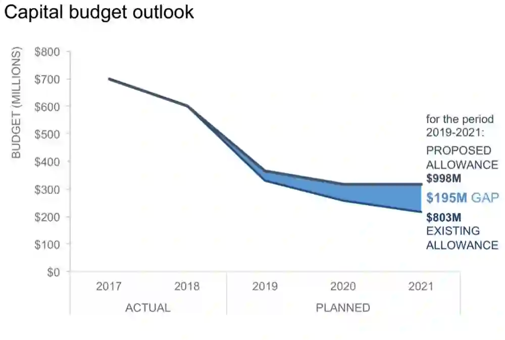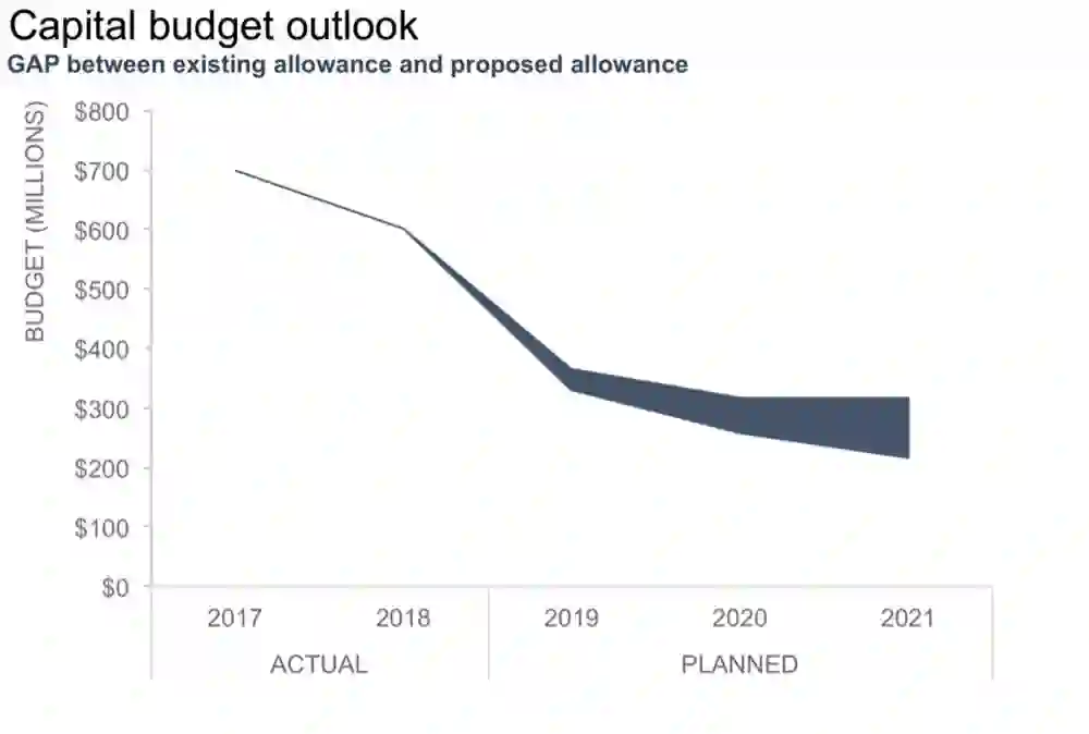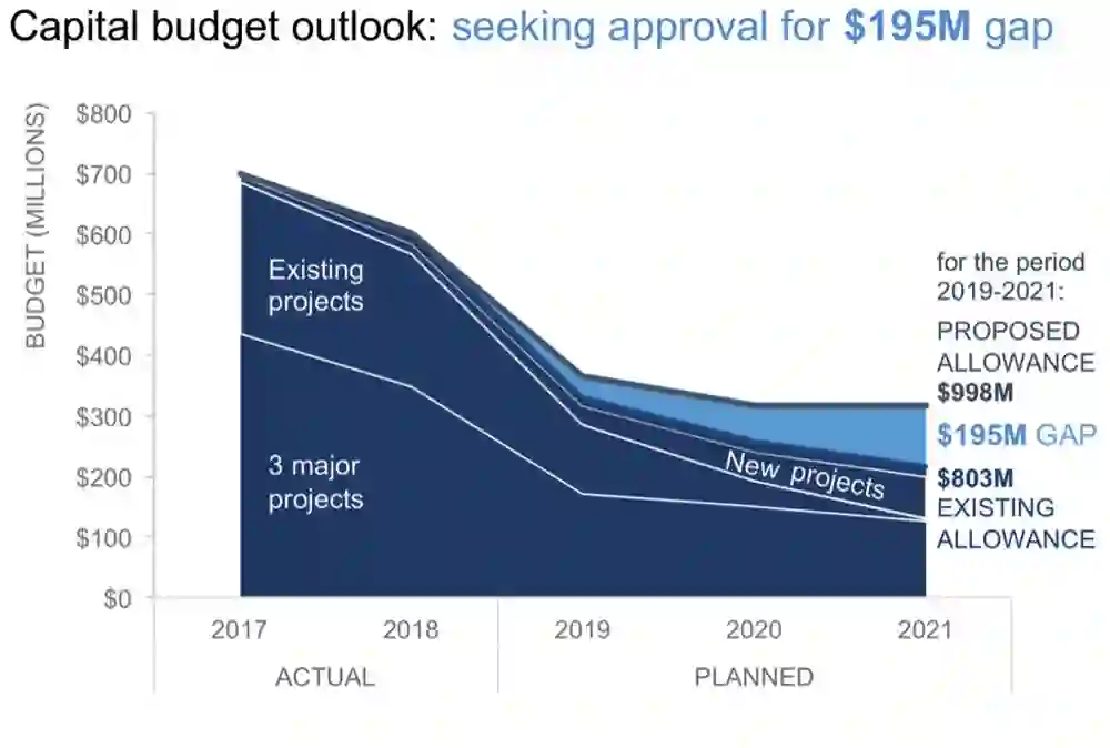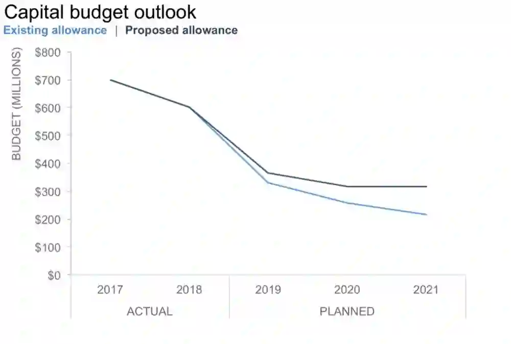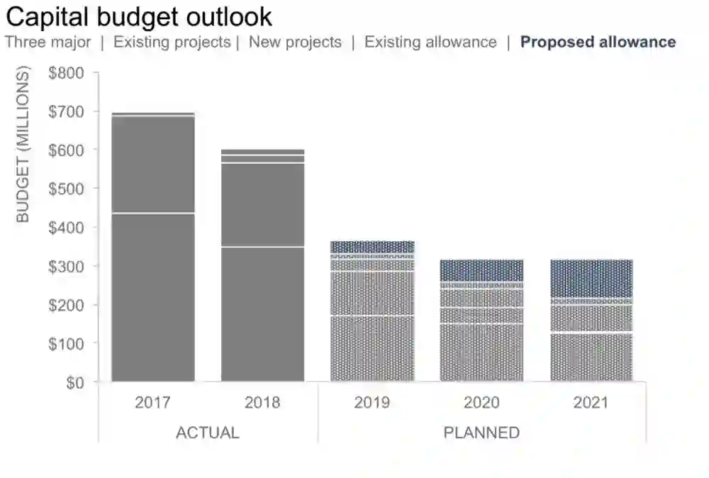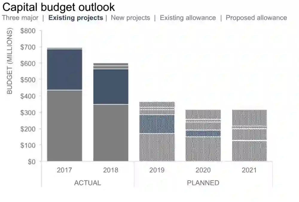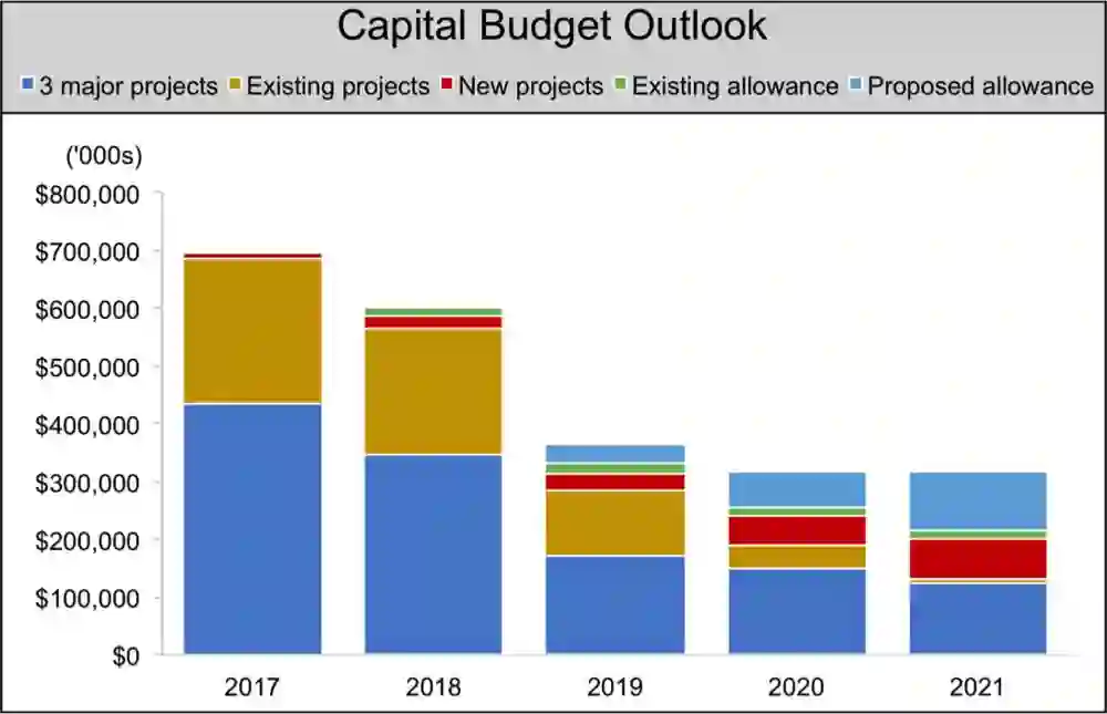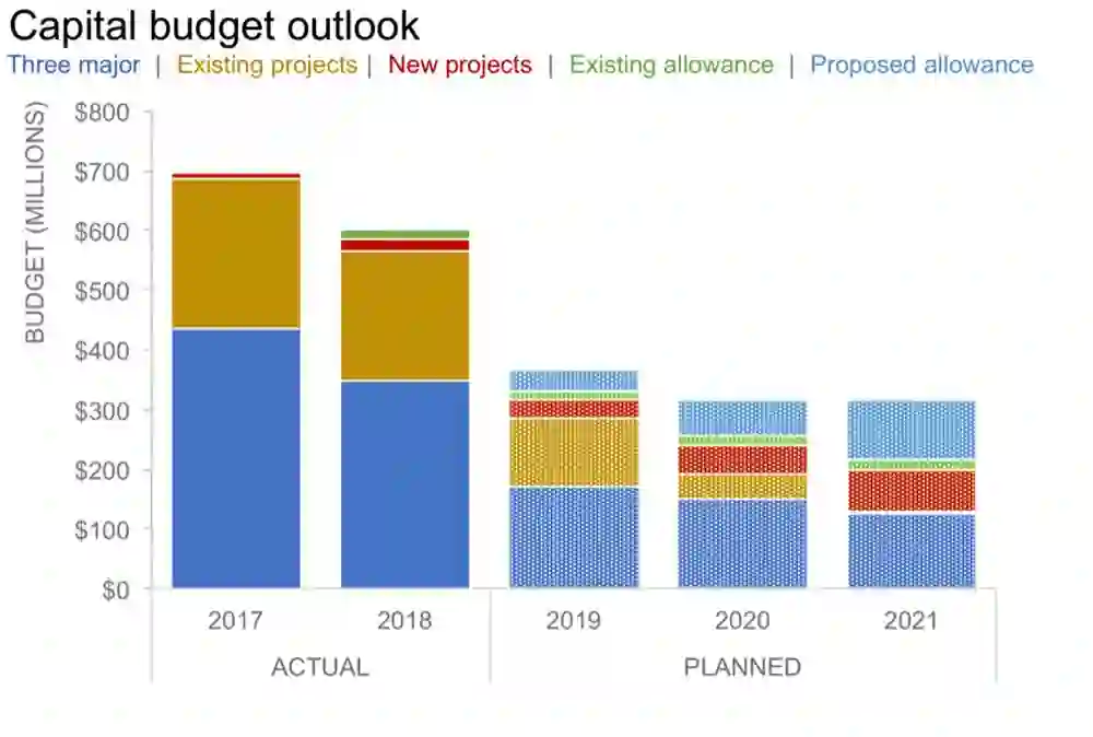 三个主要项目的预算从2018年到2019年显着下降,然后随着时间的推移缓慢下降: