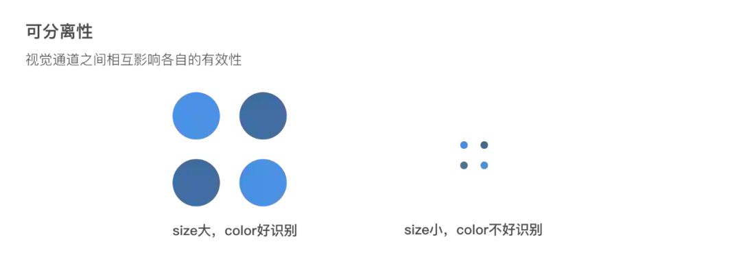 可分离性告诉我们不能无限制的使用多种视觉通道,每增加一种通道来映射数据,都需要考量对已有编码方式的影响,尤其是尺寸(size)特别影响其他视觉通道的效果。