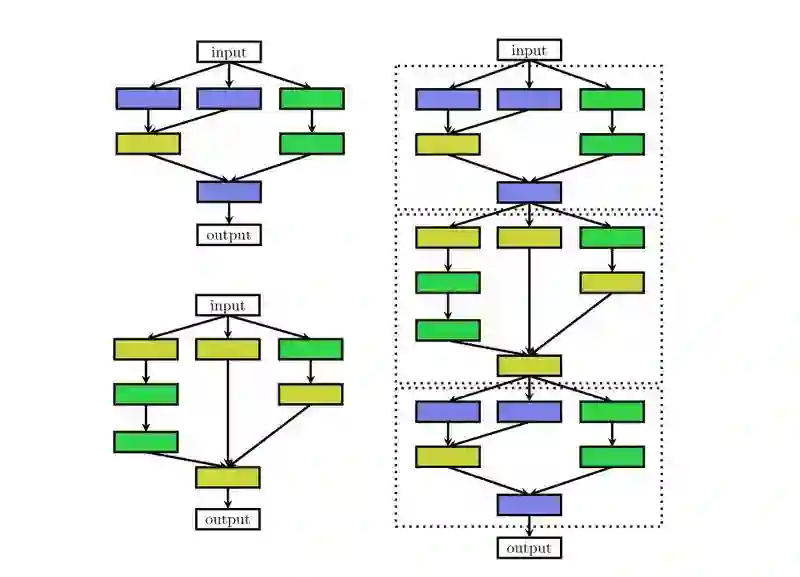 最近的一些工作受启发于一些人工设计的网络架构,研究带有多分支的网络,如下图: