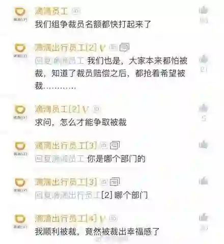 有趣的是,滴滴出行的裁员计划,由于赔偿到位,补偿丰厚。员工被裁出了“幸福感”,不少员工为了争夺裁员名额挤破了头。而滴滴并未对此事进行相关回应。滴滴出行因为处理得当,成为“良心”企业。
