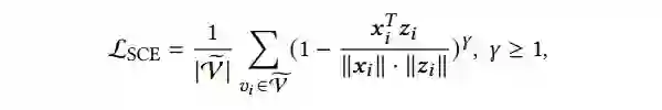 此外,为了训练的稳定,GraphMAE 采用可缩放的余弦误差(scaled cosine error)作为特征重建好坏的标准。