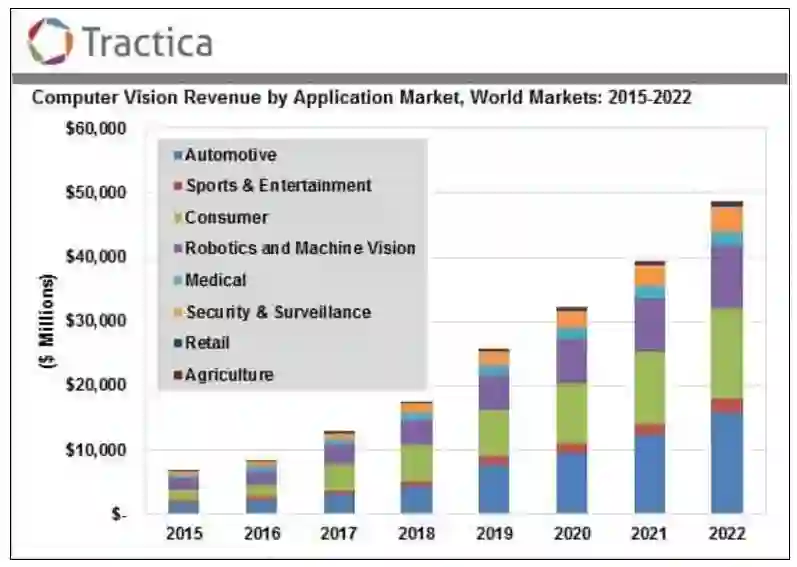 在最后一节中,我们将给出一些结论性意见,总结出目前的发展趋势。我们希望能够得到计算机视觉领域近期发展的全貌。注意:该总结不包含 2017 年 1 月-8 月的早期内容——由于技术的快速发展,旧的技术已经被新的技术超越了。这种快速发展的态势将使得计算机视觉硬件和软件在 2022 年发展成为 486 亿美元规模的新市场。
