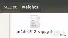 首先,下载预训练模型 m2det512_vgg.pth (baidu cloud) 文件. 然后新建一个文件夹 weights/. 将模型文件移至该目录下;