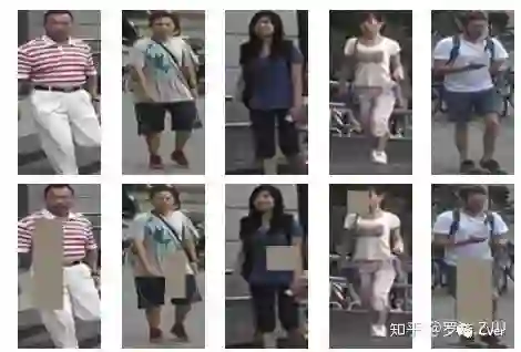 Random Erasing Augmentation(REA)[2]是一种随机擦除的数据增广方法。简单而言就是在图像中随机选择一个区域,打上噪声mask。这个mask可以是黑块、灰块也可以是随机正太噪声。直接看图就能明白,具体细节可以看论文。所有参数都是直接利用原论文的参数。随机擦除是一种数据增广的方式,可以降低模型过拟合的程度,因此可以提升模型的性能。