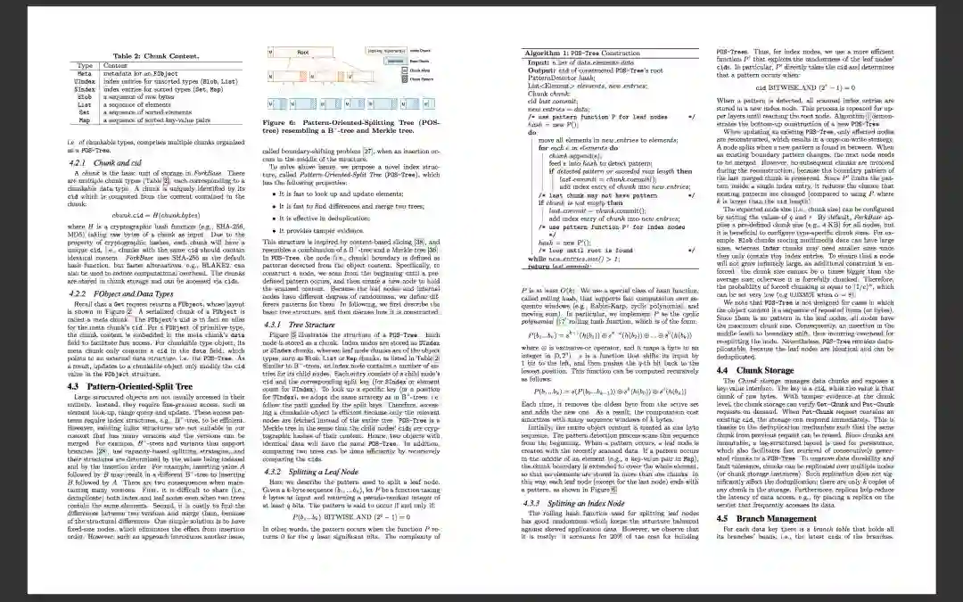 实际上我们最终得到的是一种建立在底层对象存储系统上的键值存储系统,直接支持版本控制、分叉和篡改证据。ForkBase的核心是一种新颖的索引结构,名为POS-Tree(面向模式的拆分树)。
