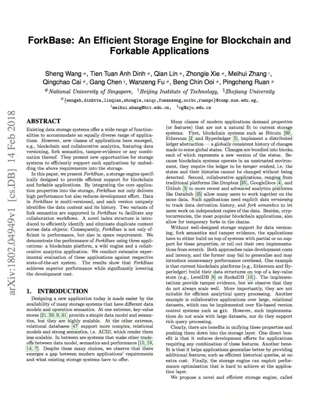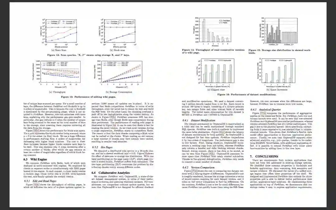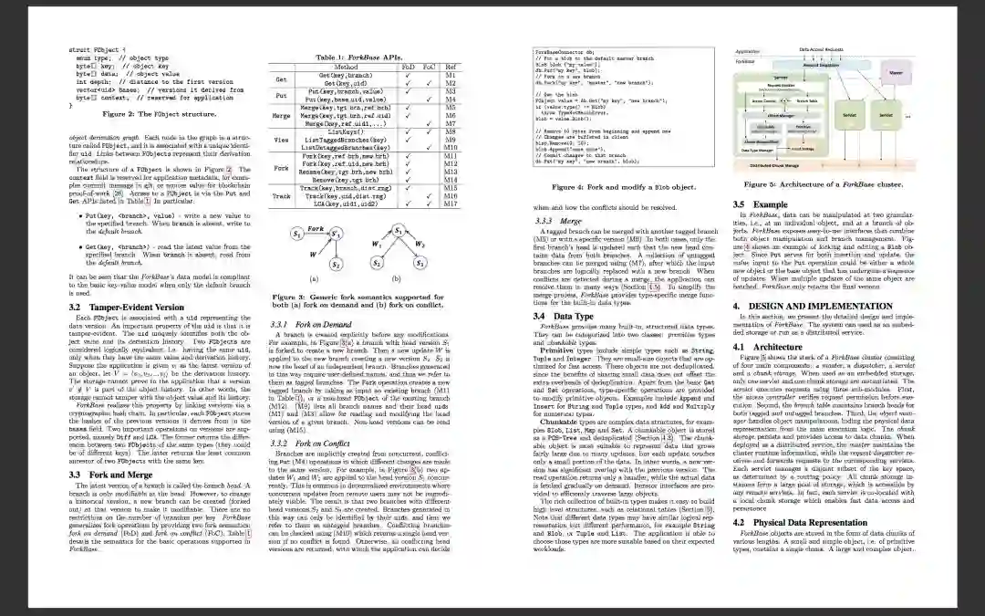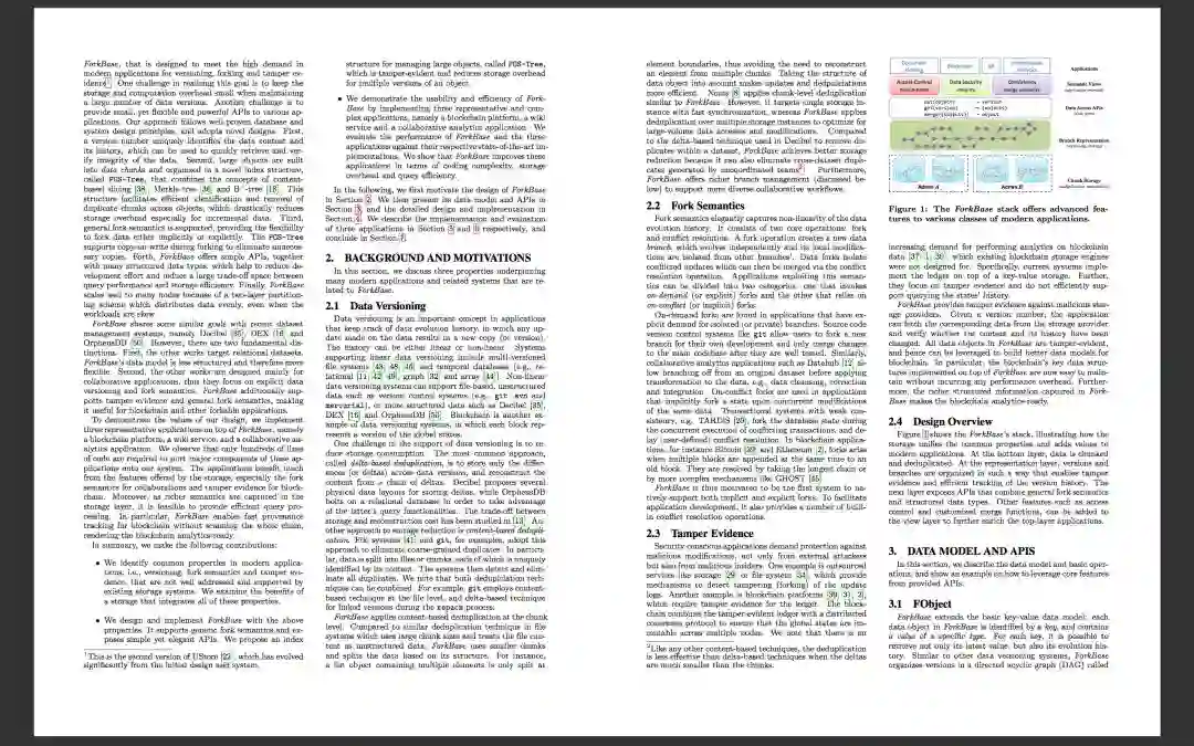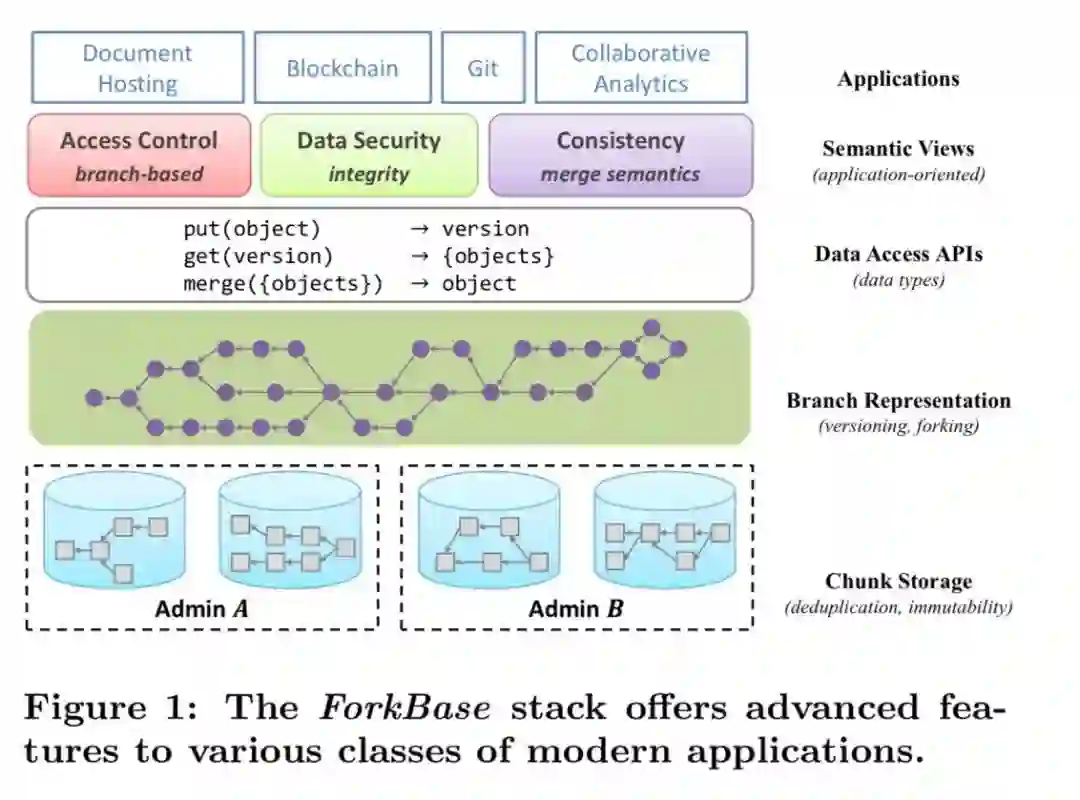 ForkBase是一种数据存储系统,旨在支持需要数据版本控制、分叉和防篡改等功能的应用。一个主要的例子就是区块链系统,但这还可能包括协作应用,比如GoogleDocs。举例说,如今以太坊和HyperLedger的数据结构就直接建立在键值存储系统上。ForkBase力求改而将上述这些属性一路推送到存储层:
