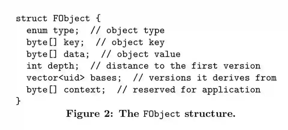 FObject的uid是对象的值及其衍生历史的独特标识。因此,逻辑对等要求对象不仅有同样的值,还有同样的历史记录。诸版本用加密哈希链连接起来,确保能够检测到企图篡改的任何行为。每个FObject存储它从bases字段获得的之前版本的哈希。