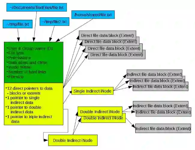 在 Linux 的 EXT4 文件系统的历史、特性以及最佳实践[1]一文中,我曾探讨过这样一个事实,每个文件都有一个包含该文件信息的 inode,包含了该文件的位置信息。上述文章中的图2[6]展示了一个指向 inode 的单一目录项。每个文件都至少有一个目录项指向描述该文件信息的 inode ,目录项是一个硬链接,因此每个文件至少都有一个硬链接。
